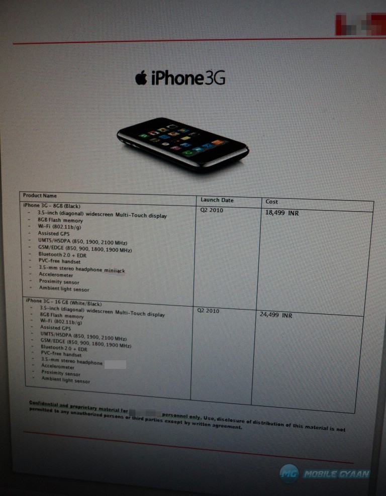 Now , there are fresh rumors that the iPhone 3G (older model) getting a major price cut in India . There are some leaked documents which show the new pricing for the Airtel iPhone 3G. The price of the iPhone 3G is as cheap as Rs.18499 more than 10000 rupees lesser than the current price .