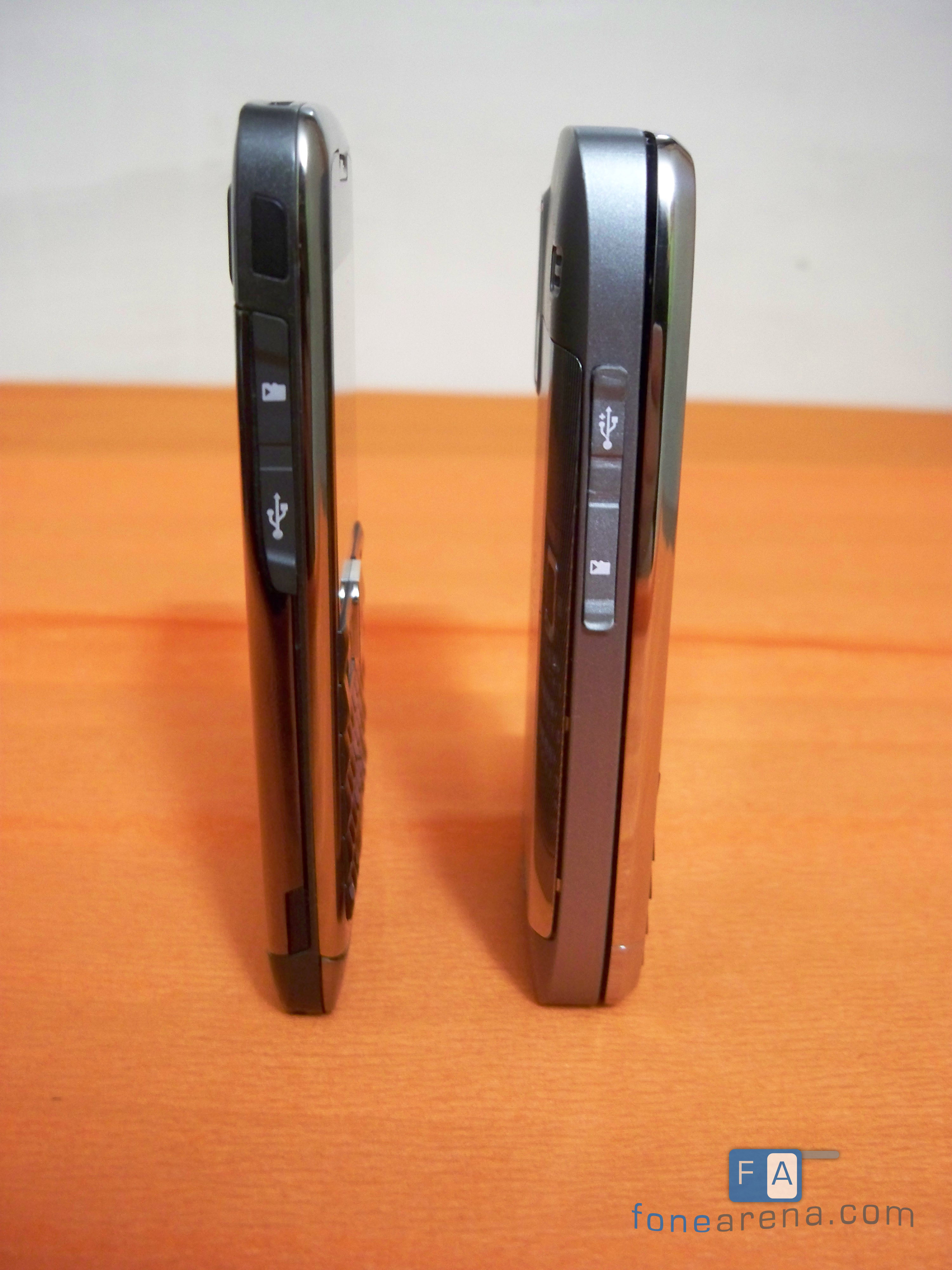 The E75 carries the same design language, with metallic accents, but features a narrower size that makes it easier to hold it in one hand, especially when you’re making calls. It is also thicker which allows it to have the QWERTY slider form factor. Here are the comparison images, for your viewing pleasure (as always, click on the thumbnails for the full 12MP photos).