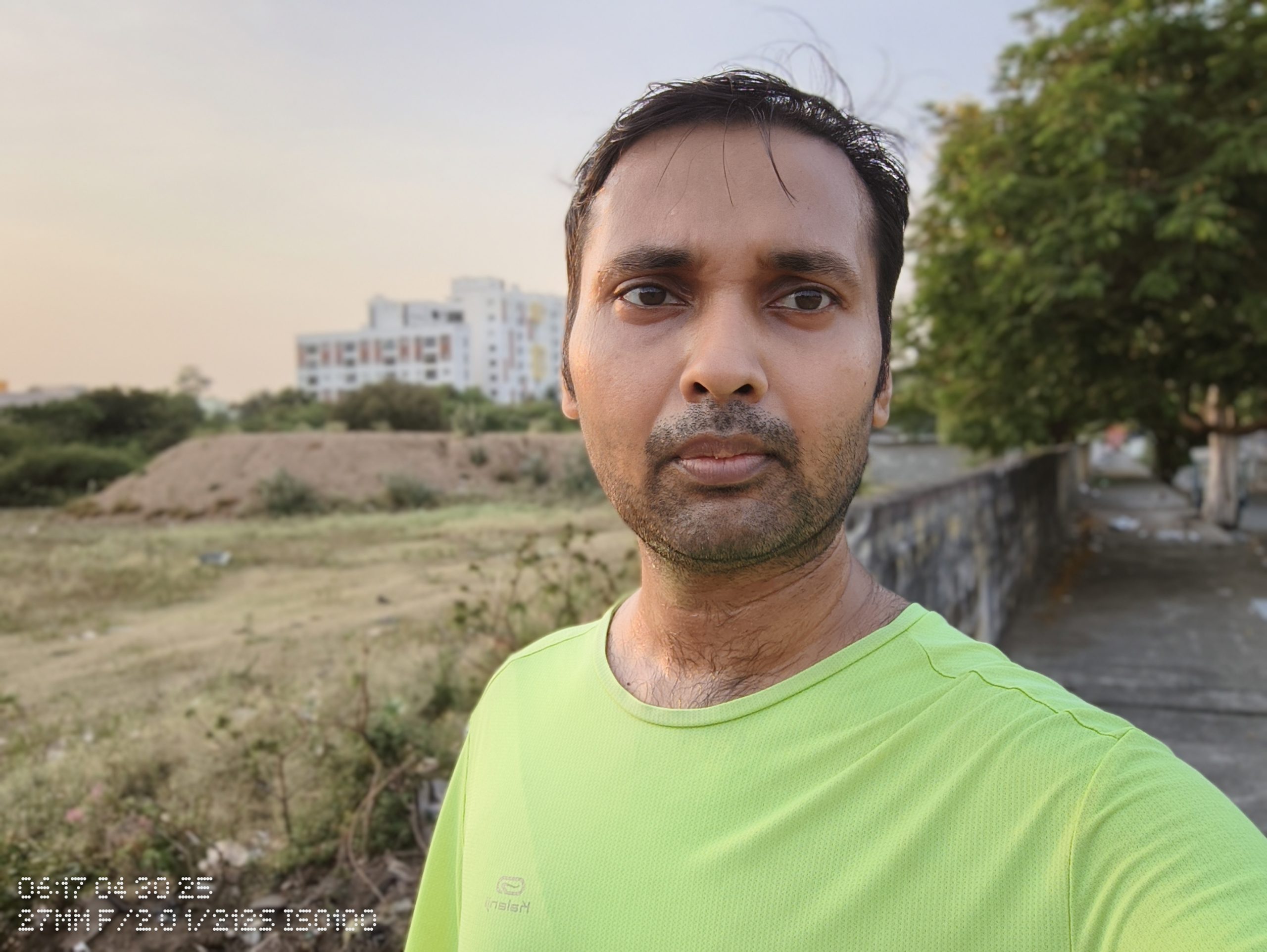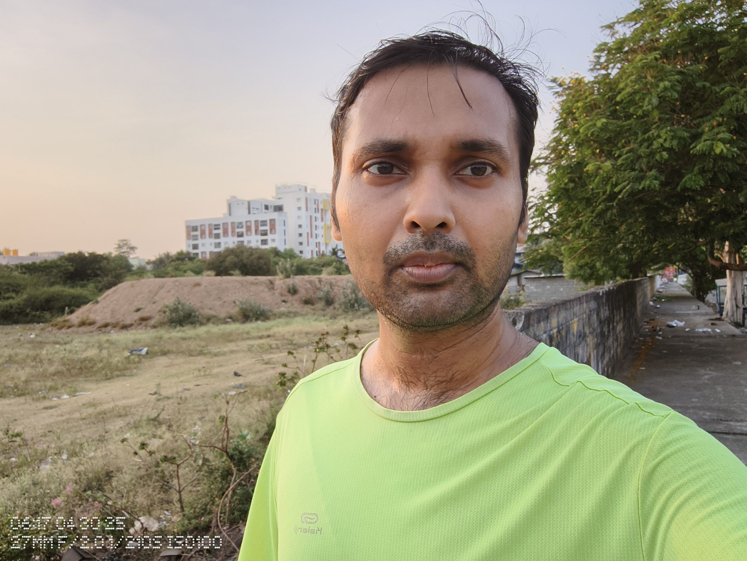 The 16MP front camera is decent in daylight, and you get full 16MP output. Edge detection in portrait is good. Lowlight camera performance is average, and the auto night mode helps to keep the noise low.