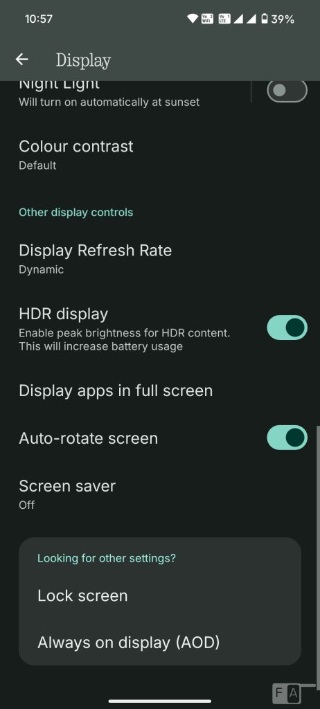 Under the display options, there are different options to adjust colours based on your preference. There is also a night light option that lets you reduce the display’s blue light emission, so it doesn’t cause eye strain when you are reading at night. There is Dark mode, similar to other Android phones.