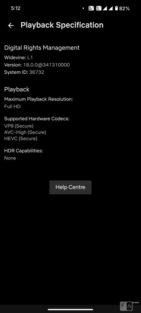YouTube Music is the default music player. It doesn’t have Dolby Atmos or any other custom audio features. Audio through the mono speaker is decent, but not loud. Audio through the headphones is good as well. This has Widevine L1 so that you can play HD content on Amazon Prime Video, Netflix and other streaming apps. The is HDR playback on YouTube, but not on Netflix.