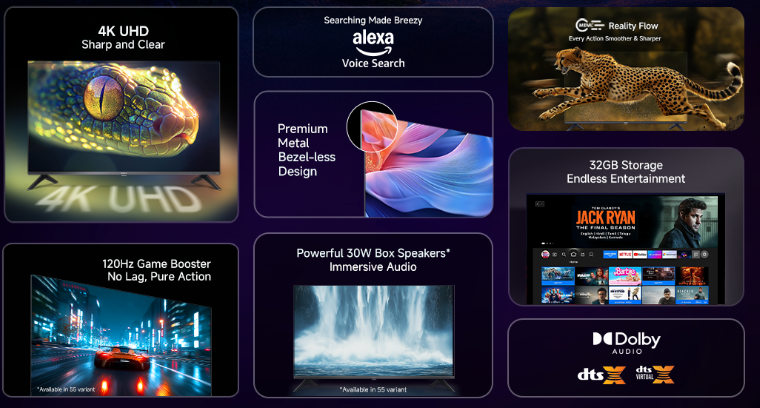 The Xiaomi 4K TV FX Series 43″ is priced at Rs. 26,499 and the 55″ model costs Rs. 36,999.