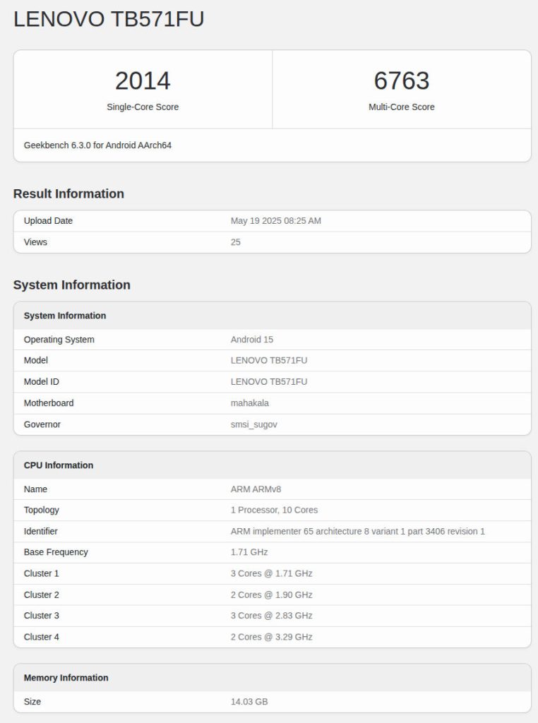 LENOVO TB571FU smartphone with a new Deca-Core chip has surfaced in Geekbench listing. This is the company’s first self-developed chip, says leaker Digital Chat Station.
