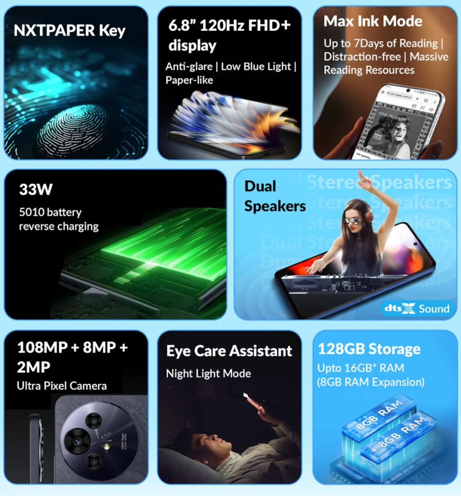 With a 5010mAh battery, it promises up to 7 days of use with the Max Ink mode. Other features include dual speakers, 8GB of RAM with 8GB of additional virtual RAM, 108MP main camera, 8MP ultra-wide camera and a 2MP depth sensor. It will come with 33W fast charging with a charger in the box.