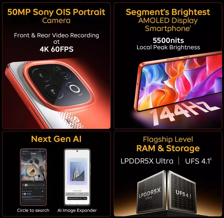 It is powered by Snapdragon 8s Gen4 SoC with up to 16GB LPDDR5X Ultra (9600Mbps) RAM + up to 512GB UFS 4.1 combination. There is Q1 independent graphics chip offering hardware-level 1.5K+144FPS super-resolution and super-frame concurrency and are equipped with iQOO’s maximum 7K Ice Dome VC liquid cooling.