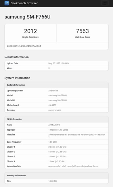 Now, the Galaxy Z Flip 7, listed under model number SM-F766U, has been spotted in the Geekbench database, according to details shared by tipster Abhishek Yadav (@yabhishekhd).