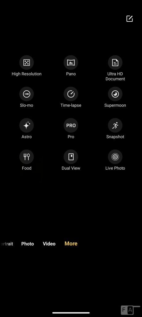 The camera UI is the same as other phones running Funtouch OS. It includes several features such as AR stickers, Pro mode, long exposure, 50MP mode, supermoon, and more.