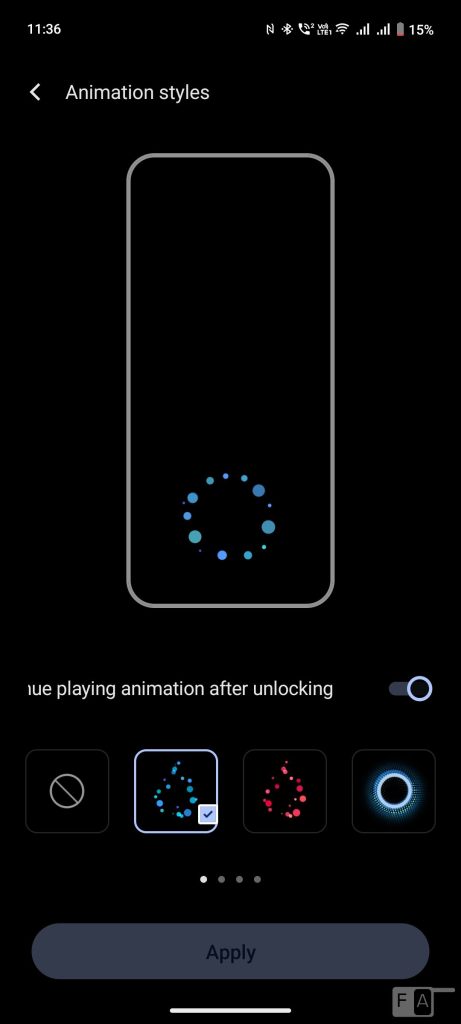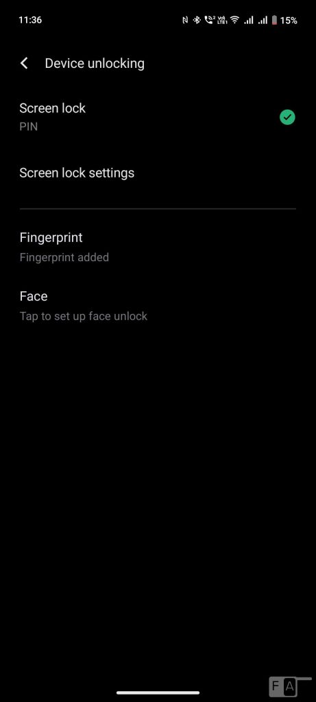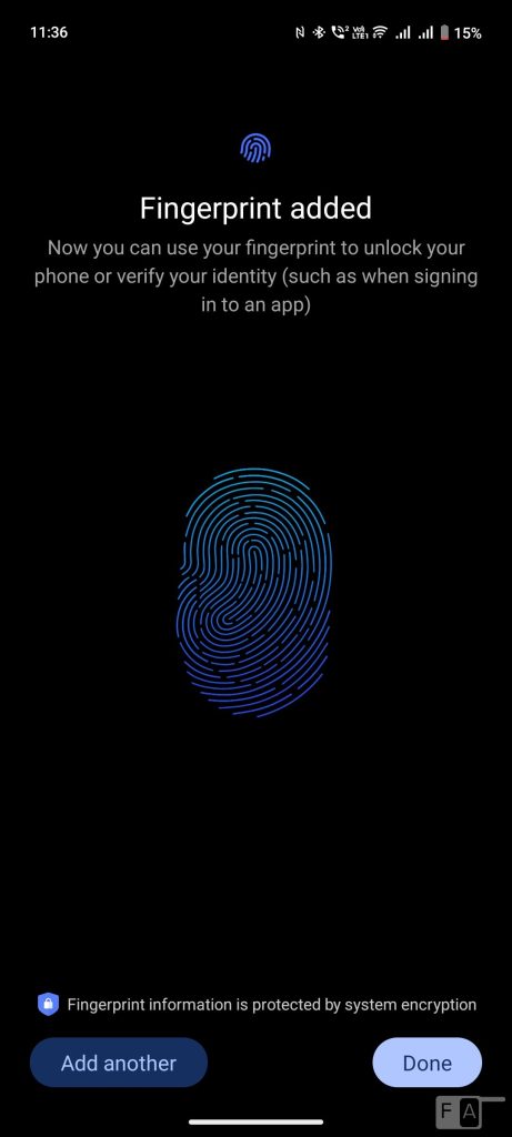 The phone has an optical in-display fingerprint sensor which immediately unlocks the phone just by keeping your finger on the sensor. You can add up to 5 fingerprints. There are different animation styles that display when you unlock, which you can disable. The phone also has face unlock that can unlock the phone in seconds, but it is not as secure as fingerprint.