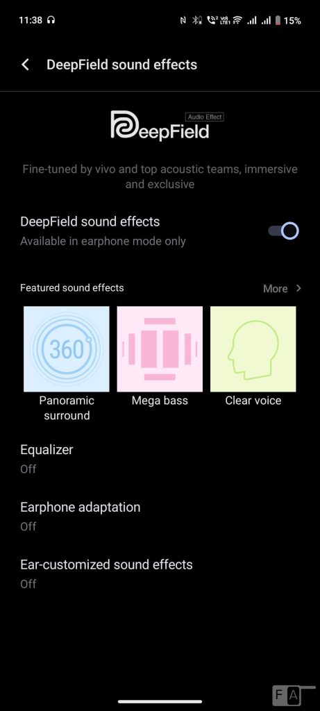 The default Music Player also has equalizer and DeepField sound effects. It doesn’t have FM Radio support. There is audio super resolution, and super audio features. Audio through the stereo speakers are good. Audio through the headphones is good as well.