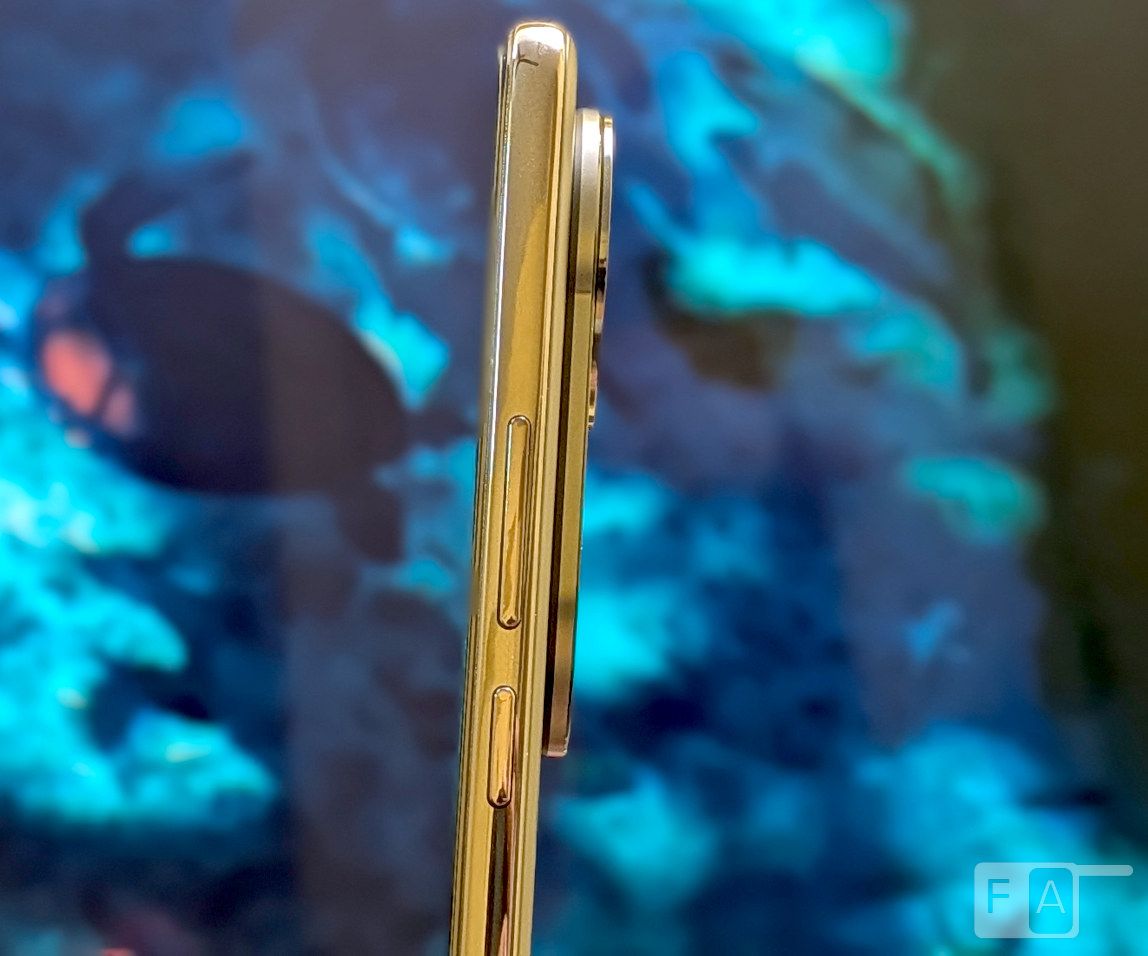 These lines mimic feather-like textures using smooth, flowing strokes, resulting in a Golden Phoenix Feather Texture on the back panel Within the microscopic grooves, 1024 precision-cut reflective facets manipulate light and shadow to create subtle gradients and dynamic shimmer. Plasma polishing boosts surface brightness by nearly 15%, giving the finish a luminous, satin-like glow that shifts gracefully under sunlight—delivering both visual depth and a sense of movement.