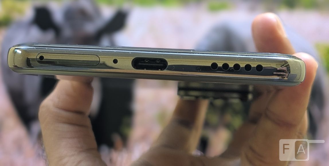 Coming to the button placements and ports, the phone has a power button and volume rockers on the right. On the bottom, there is a dual SIM slot, primary microphone, USB Type-C port and a speaker grill. The secondary microphone is present on the top along with vent for speakers.