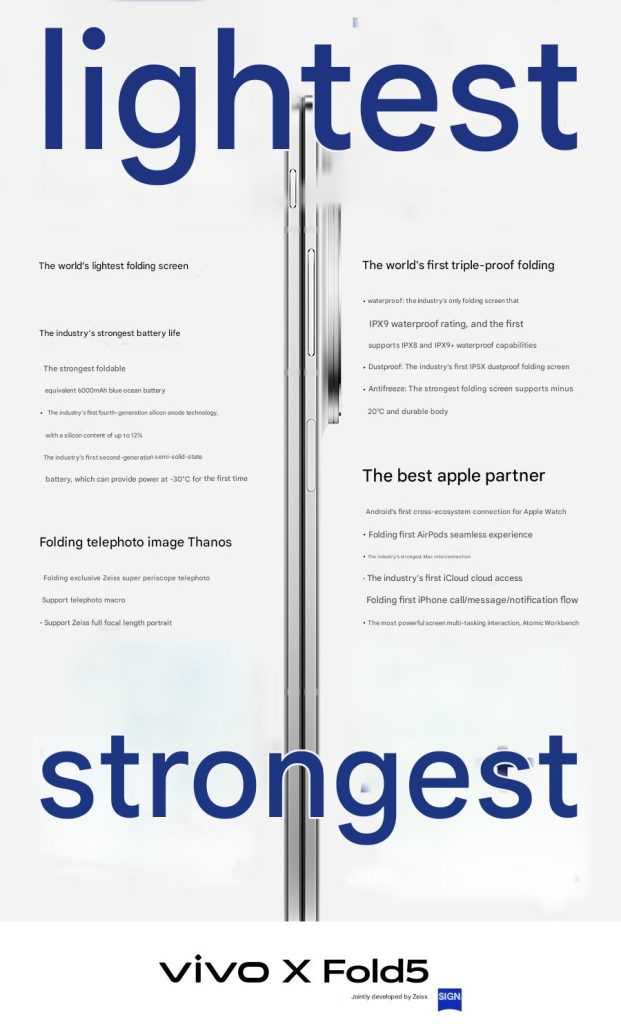 Earlier: vivo has confirmed the launch of X Fold5, the company’s next flagship foldable phone at an event in China on June 25th. The company once again highlights ‘Lighter and Stronger’.