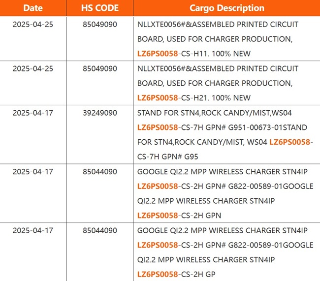 Additional details were uncovered in a trade database where the charger is listed as a Google wireless charger with Qi 2.2 and MPP (Magnetic Power Profile) support. The charger’s codename is “STN4”, and it will come in two colors: “Rock Candy” (likely black) and “Mist” (likely off-white), reflecting Google’s typical color codenames.