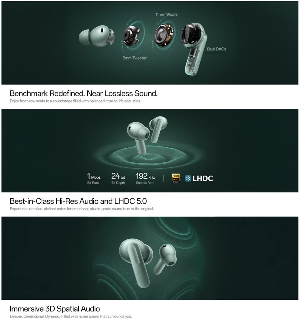 These are already official in China with up to 55dB active noise reduction covering 5500Hz ultra-wideband, three-microphone AI call noise reduction.