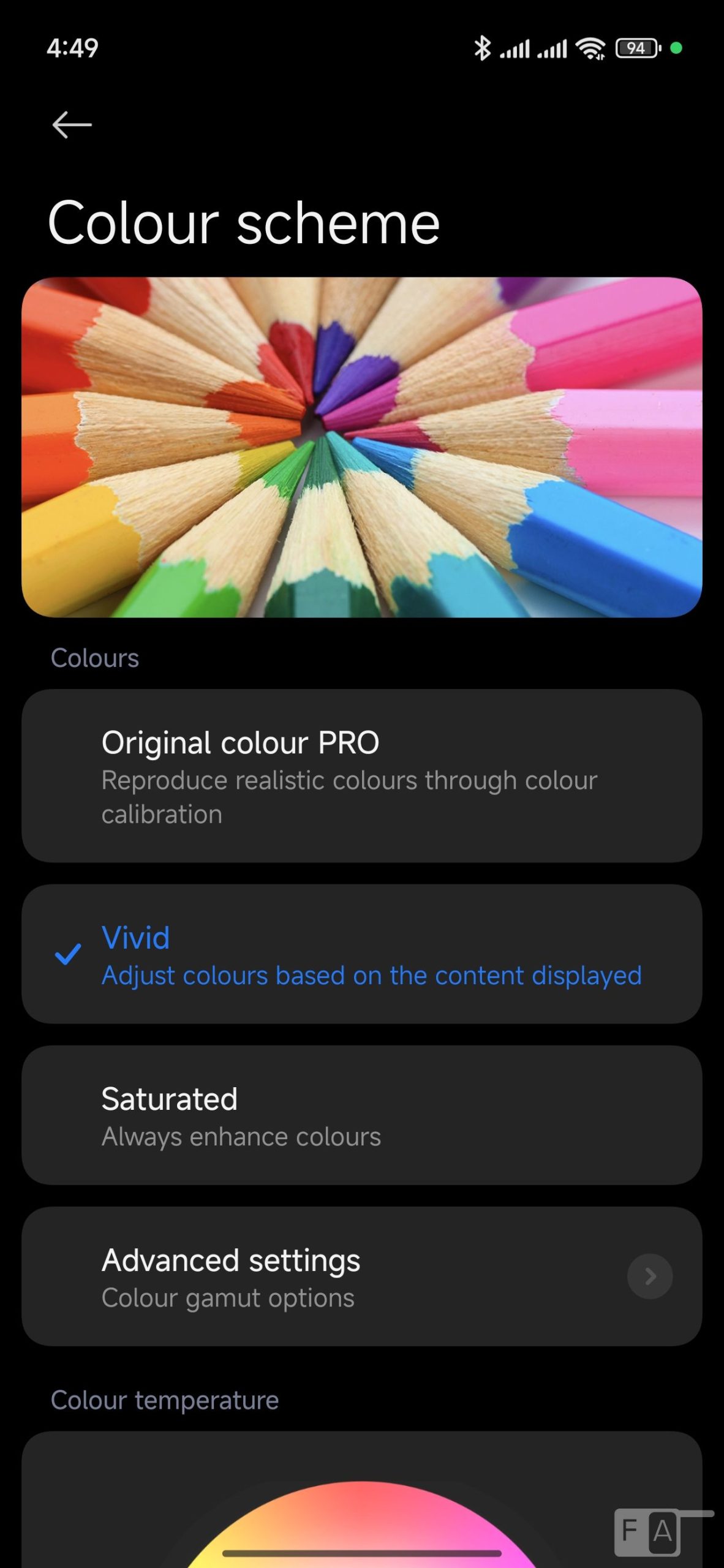 Under the display options, there are different options to adjust colours and contrast based on your preference with Original colour PRO option. It also has Super resolution, AI HDR enhancement for videos, but it doesn’t have MEMC. The phone has an always-on-display option, which can be enabled from display settings. The phone comes with Corning Gorilla Glass 7i protection.