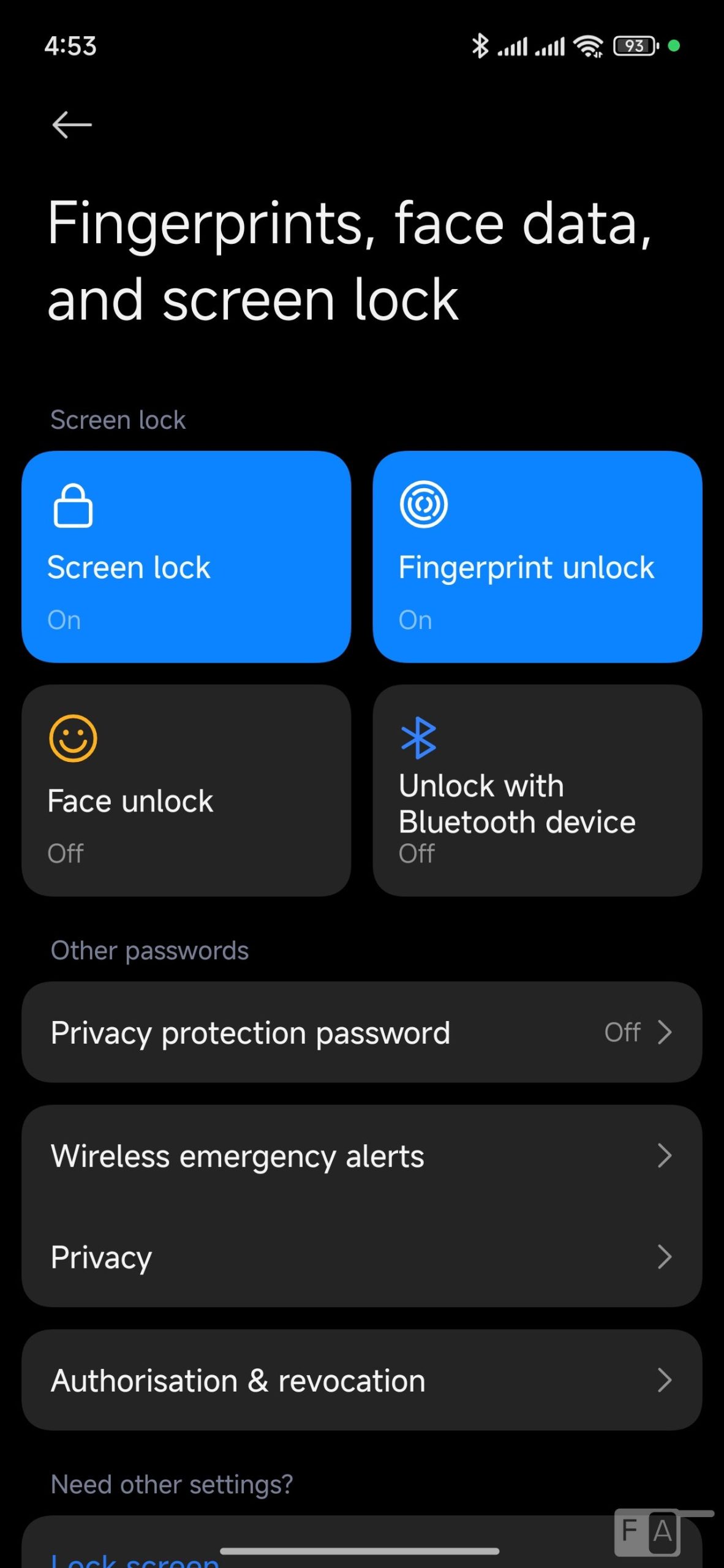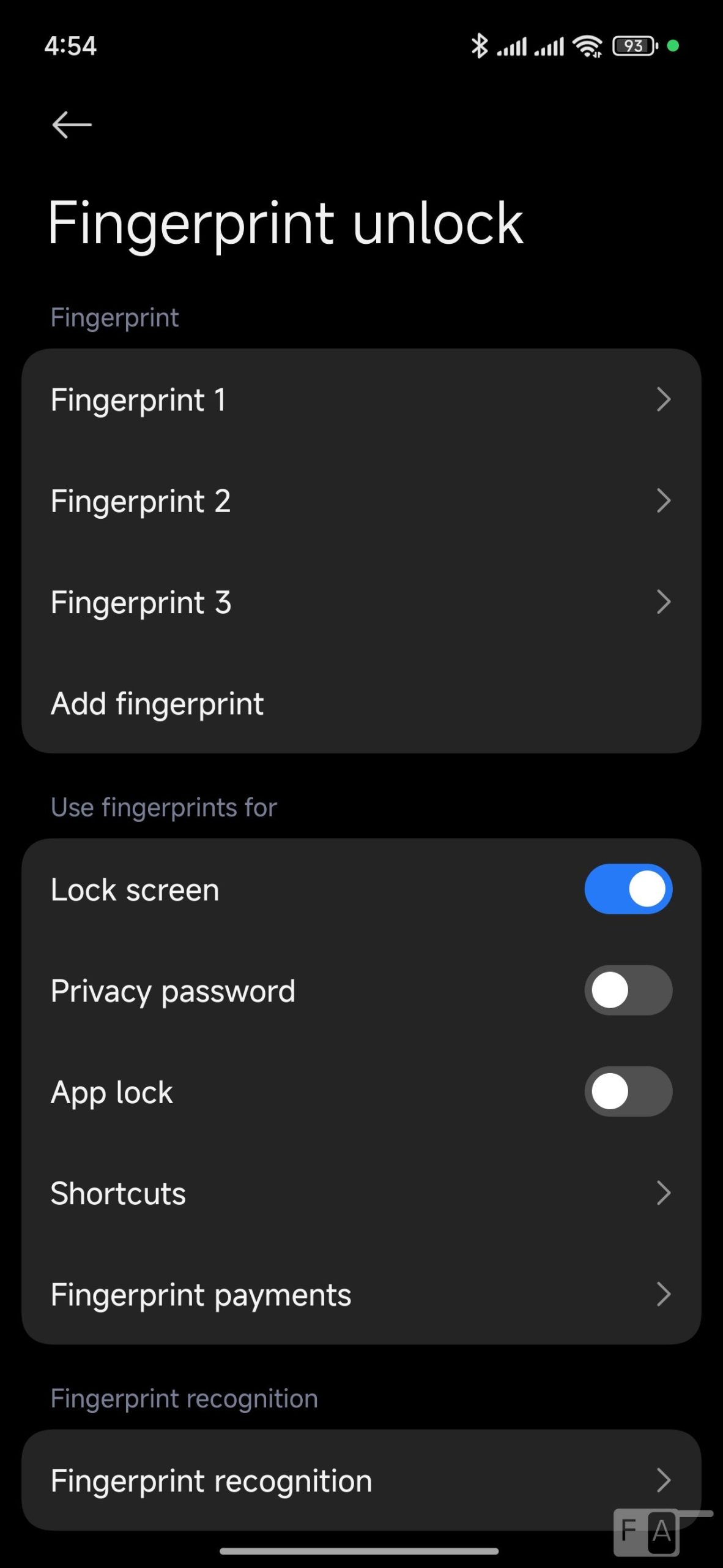 The phone has an in-display fingerprint sensor. You can add up to 5 fingerprints. You can also use the fingerprint for app local and payments in apps. There are also options to change the fingerprint animation. The phone also has face unlock, but it is not that secure.