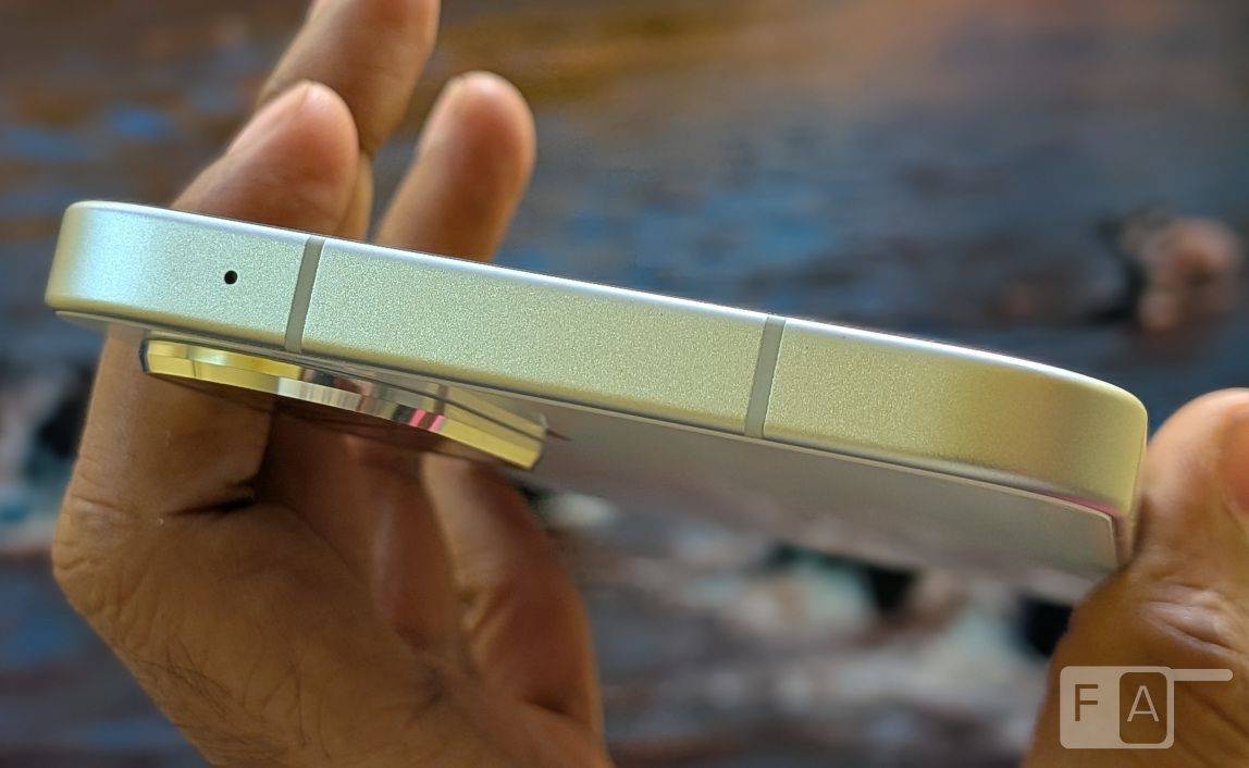 Coming to the button placements, the volume rockers and the power button are present on the right side of the phone. The dual SIM slot, loudspeaker grill, primary microphone and USB Type-C port are present on the bottom. It doesn’t have a microSD expansion slot. On the top there is a secondary microphone. The infrared sensor is actually present on the back. Since the phone has a metal frame, you can see the antenna cutouts. The flat frame offers a good grip to hold and doesn’t attract fingerprints.