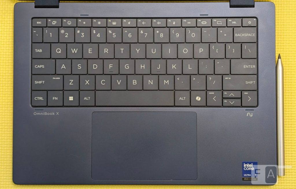 The HP OmniBook X Flip 14 feels surprisingly light in the hands. At about 1.38 kg, it doesn’t feel like a burden in my backpack, even with a power adapter. The sandblasted anodized texture resists fingerprints quite well. Over a few weeks of constant handling, I only needed to wipe it down occasionally.