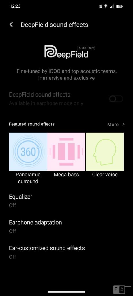 The default Music Player also has equalizer and DeepField sound effects. It also has FM Radio support. There is audio super resolution, and super audio features. Audio through the mono speakers is decent, the company could have offered stereo speakers to compete with other brands. Audio through the headphones is good as well.