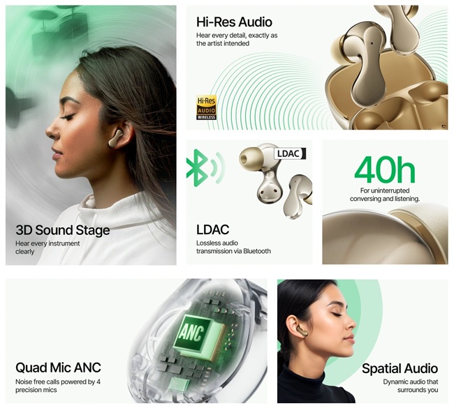 - Noise Cancellation: 35dB ANC, Quad Mic ENC