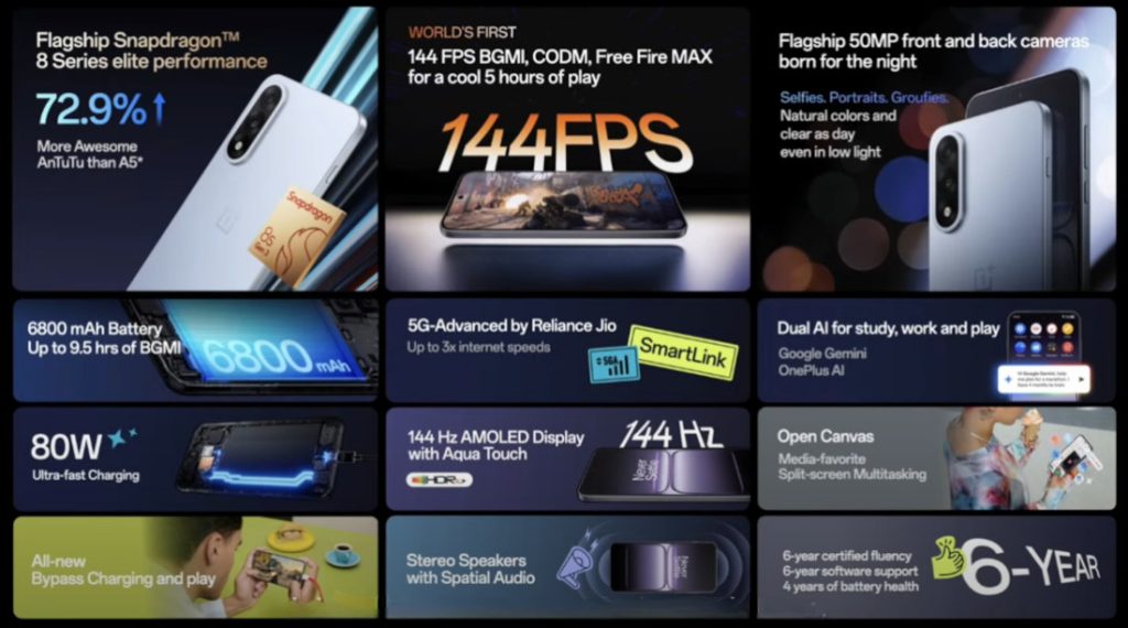It will be available from Amazon.in, OnePlus.in, OnePlus Store App, as well as mainline stores such as OnePlus Experience Stores, and partner stores such as Reliance Digital, Croma, Vijay Sales, Bajaj Electronics, and more starting from 9th July 2025, 12 PM onwards.