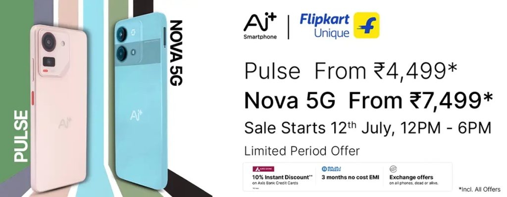 The Ai+ Pulse flash sale begins on July 12 at 12 Noon, and the Ai+ Nova 5G sale starts on July 13 at 12 Noon on Flipkart.com. Both phones come with a 1-year warranty.
