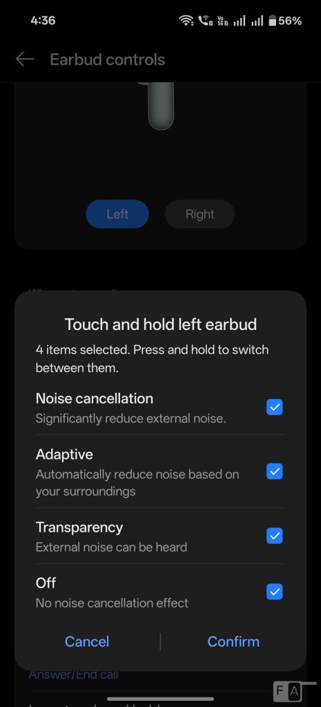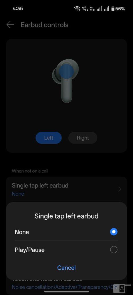 You can also choose at least two from Noise cancellation, Transparency, Noise cancellation off, when you press and hold either earbud. The autoplay / pause option when you remove the earbud can be disabled. The earbuds miss the Zen mode option, which is exclusive to Buds Pro series.