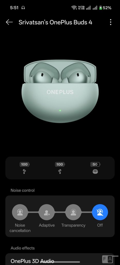 Compared to 50dB ANC in Buds 3, this offers 55dB ANC, and it has wide 5500Hz frequency range. There are Smart, Max, Moderate and Mild modes. The Smart noise cancellation option works well in blocking the noise automatically depending on the noise outside.