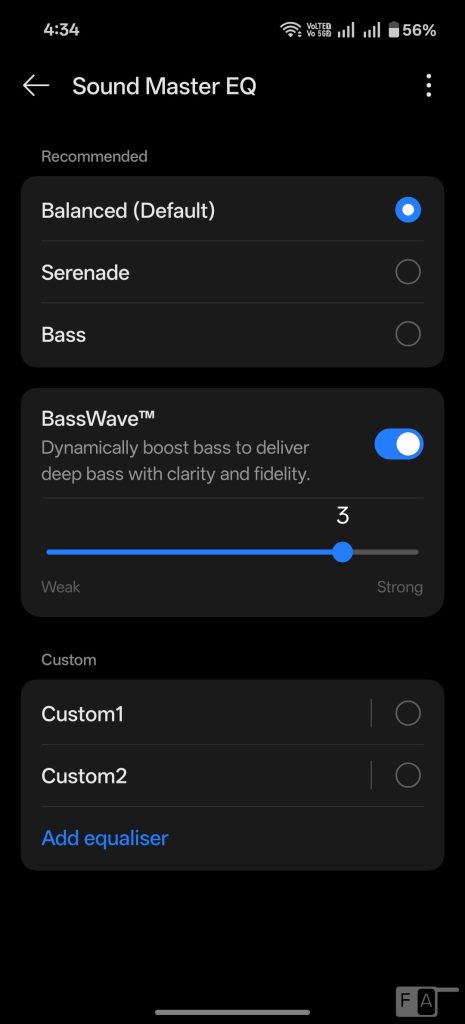 There is OnePlus 3D audio, which uses software to create spatial sound. It features four equalizers – Balanced (default), Bold, Serenade and Bass – so that every song can be heard how it should. You can also create custom EQ.