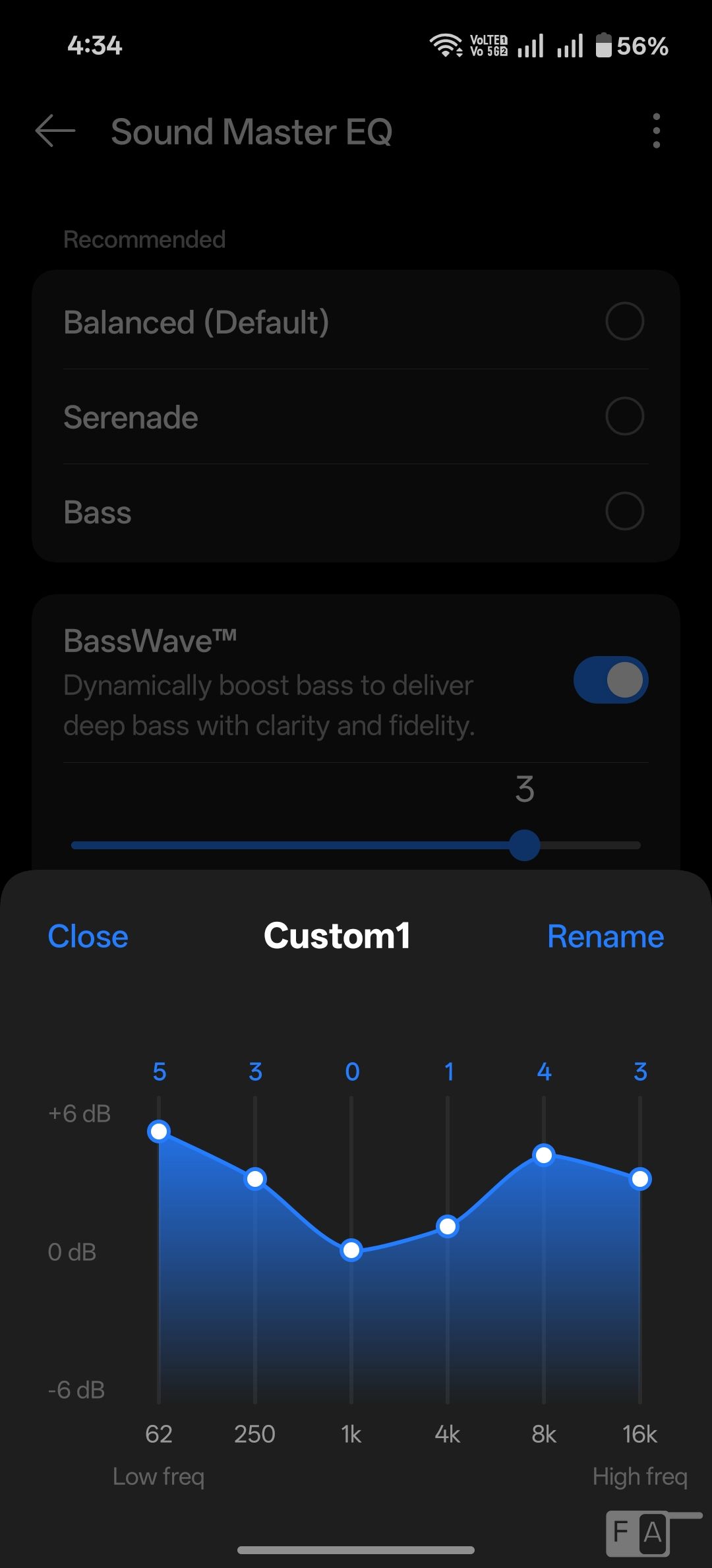 If you feel the bass is not enough, there is BassWave feature that boosts bass even more, and you can select the strength. Golden Sound lets you customize the audio based on the ear canal and hearing characteristics. There is also Hi-Res mode.