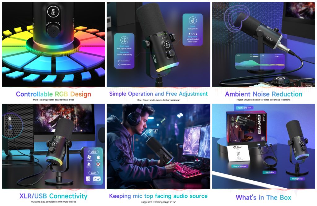 Quick specifications: CLAW GM43 Dynamic RGB Microphone