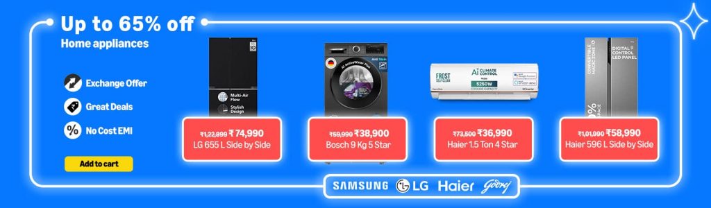 - Discounts up to 70% on over 2 lakh products, including laptops, appliances, office furniture, and industrial supplies.
