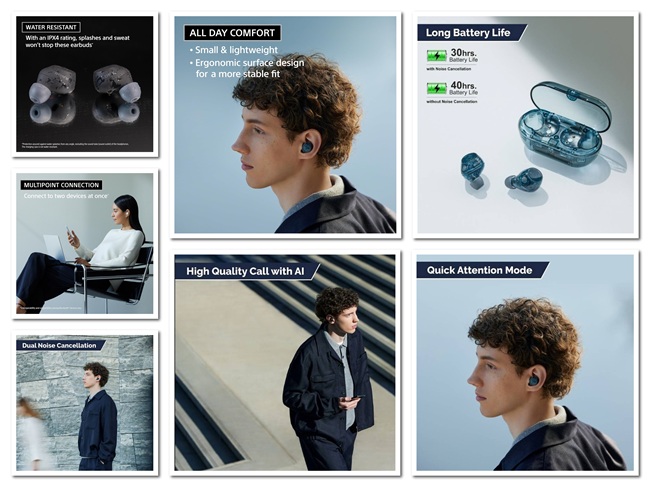 Available in four colors—Glass Blue (transparent), Pink, White, and Black—the WF-C710N earbuds come in a compact cylindrical form with a portable charging case. Designed for long-wear comfort, they also ship in plastic-free packaging, aligning with Sony’s sustainability practices.