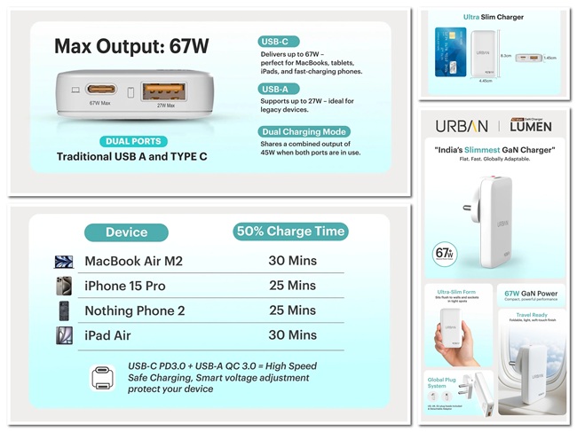 The URBAN Lumen 67W GaN charger is available starting today at an introductory price of Rs. 1,799. It can be purchased via the official website gourban.in, Amazon.in, Flipkart, and major offline retail outlets across India.