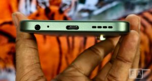 The hybrid dual SIM slot is present on the left side. The 3.5mm audio jack, primary microphone, USB Type-C port and the loudspeaker grill are present on the bottom. There is no secondary microphone on the top. The Infrared sensor is actually present on the back inside the camera deco. It is just 7.8mm thick.