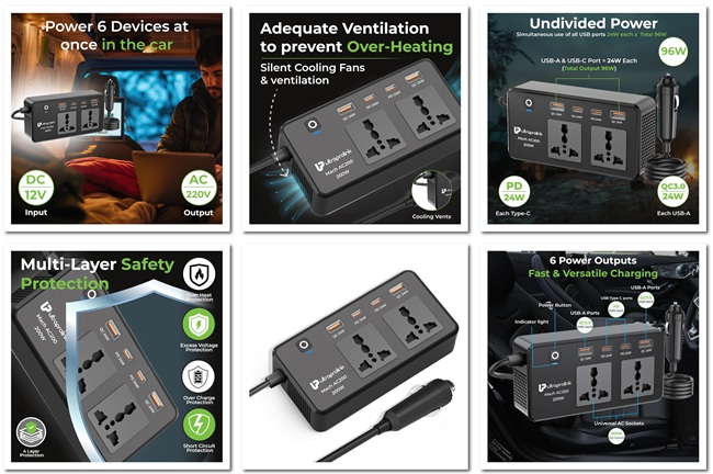 UltraProlink has introduced the Mach AC 200 in India, a 6-in-1 car inverter rated at 200W. This inverter converts a vehicle’s 12V DC power into a stable 220V AC output, with two sockets supporting a combined maximum of 200W—perfect for powering laptops, phones, printers, consoles, mini fridges, kettles, warmers, and projectors during travel.
