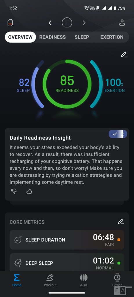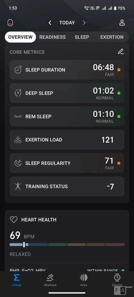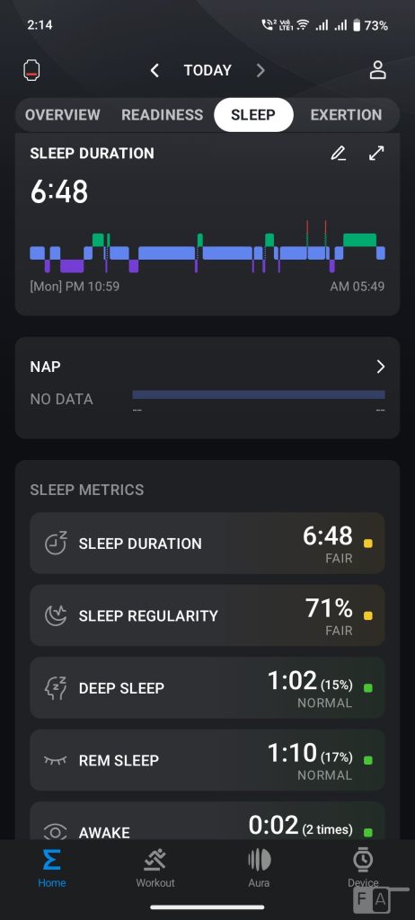 There is Zepp Aura, a new rest and wellness service that offers personalized health solutions in real-time, including scientifically designed music, daily tips, and more. This is a paid service at Rs. 499 per month or Rs. 1299 per year with a 7 or 14-day trial. Even though the watch has a thermometer, it doesn’t measure your temperature during the sleep.