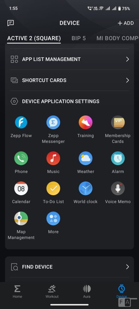 Inside the Amazfit Active 2 Square settings you can select call reminders, notifications from the preferred apps, health reminders such as 24-hour HR monitoring, stress monitoring, set watch faces and more.