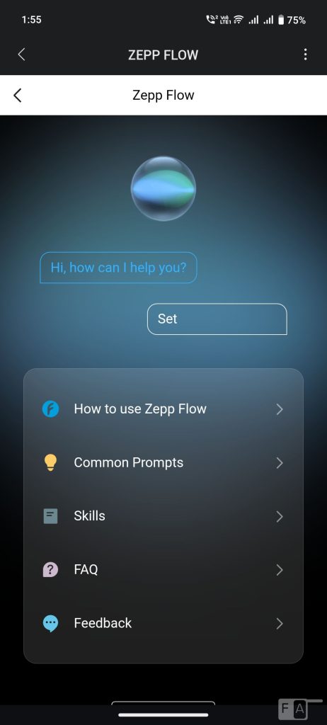 Zepp Flow is an AI-driven feature offering Natural-Language User Interface (LUI) powered by OpenAI. This allows users to interact with their smartwatch using natural language, eliminating the need for specific commands or keywords.