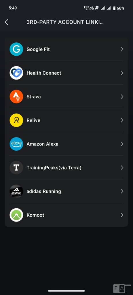 It has an option to sync your data to Google Fit, Health Connect, Strava, Komoot, Relive, adidas Running, and TrainingPeaks (Via Terra) app. There are 160+ workout modes, like indoor and outdoor walking, running and cycling, as well as more freeform workouts including strength training, and HYROX race.