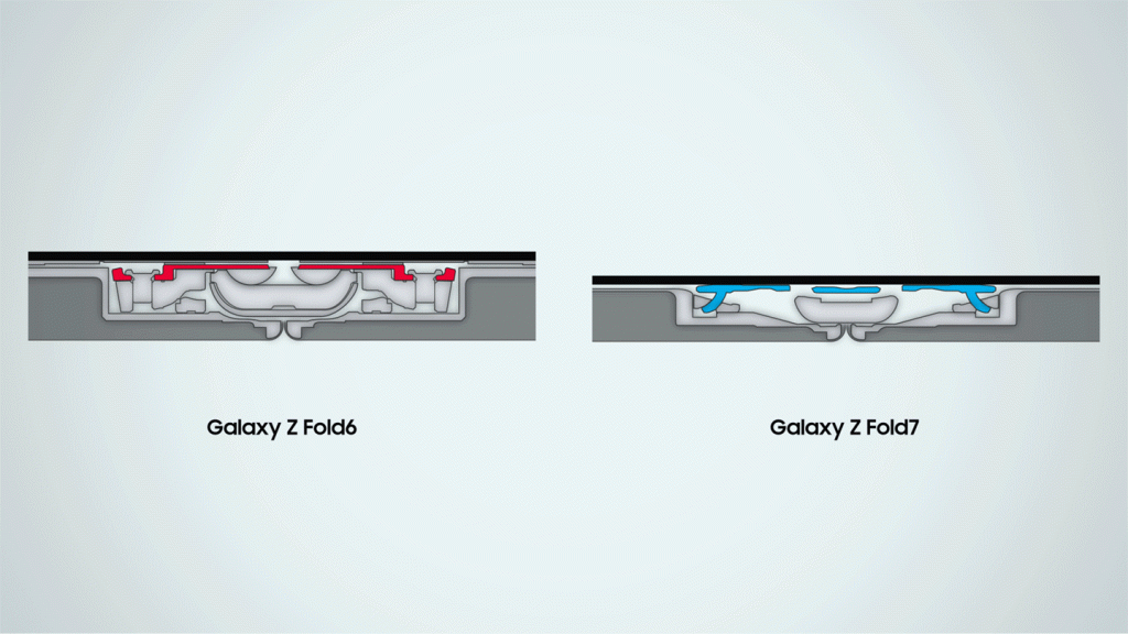 The Fold7 is equipped with Samsung’s third-gen Armor FlexHinge, offering a thinner and lighter design. This is achieved through: