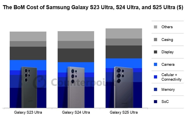 - For the S25 Ultra, memory costs increased slightly, reflecting recent supply-demand shifts.