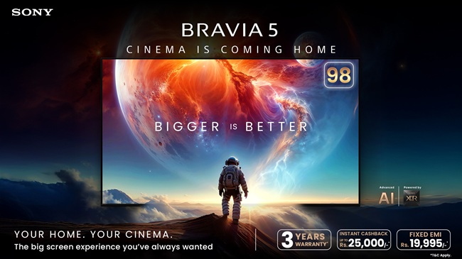 Sony India today introduced the BRAVIA 5 98″ (249 cm), the biggest and most immersive model in its acclaimed BRAVIA television series.