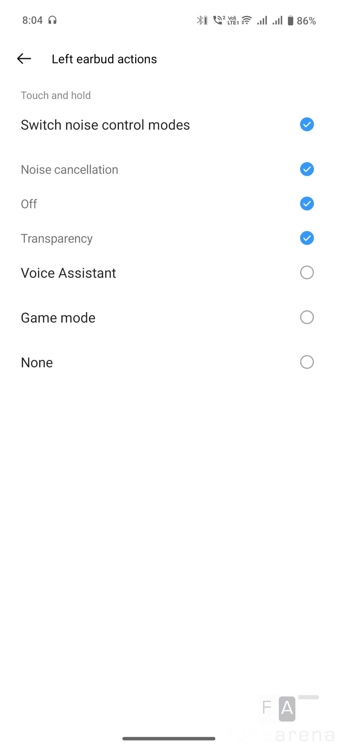 | Switch between normal, ANC and Transparency Mode | Long press, one of the earbuds for 2s | |