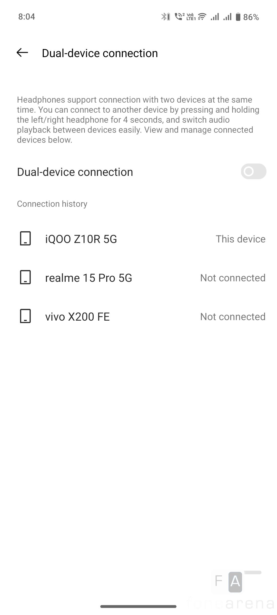 There is also dual-device connection that lets you connect to two devices at the same time, and the switch happens seamlessly when I tried it on a laptop and the phone. When you get a call on the phone, it automatically switches to it, and when you play audio on the laptop after the call, it switches to it. This is a useful feature, but you have to enable this feature in the app.