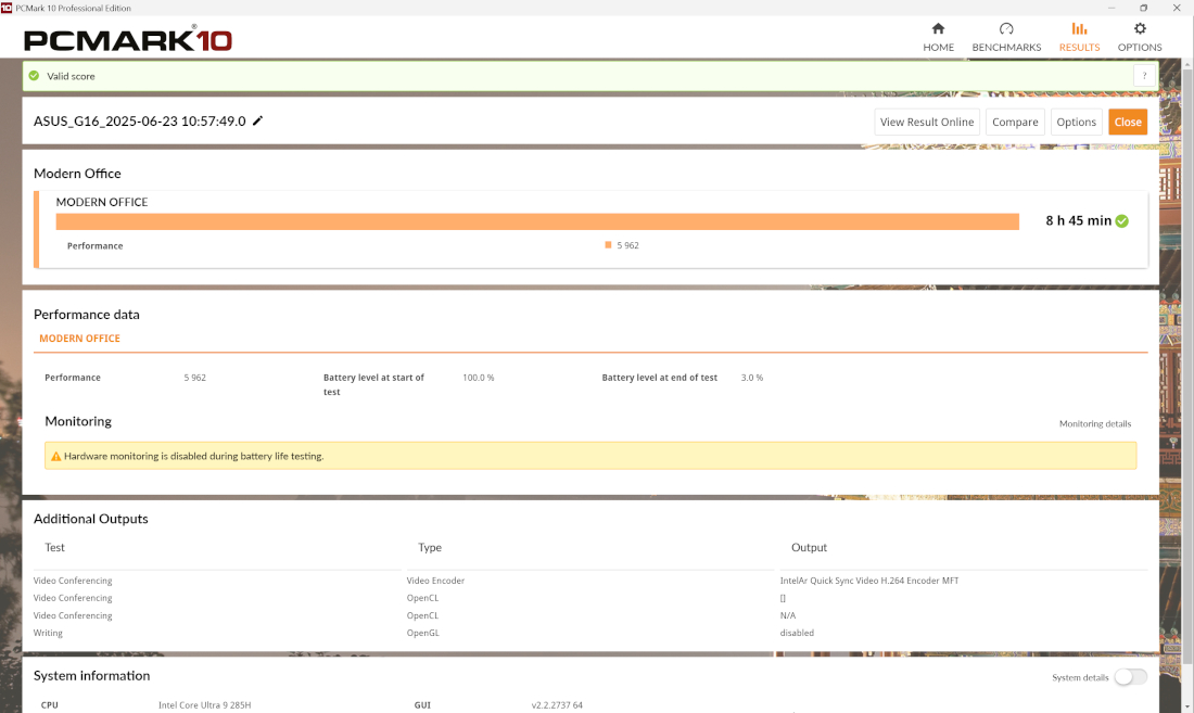 ASUS Zephyrus G16 Battery Benchmark Fonearena