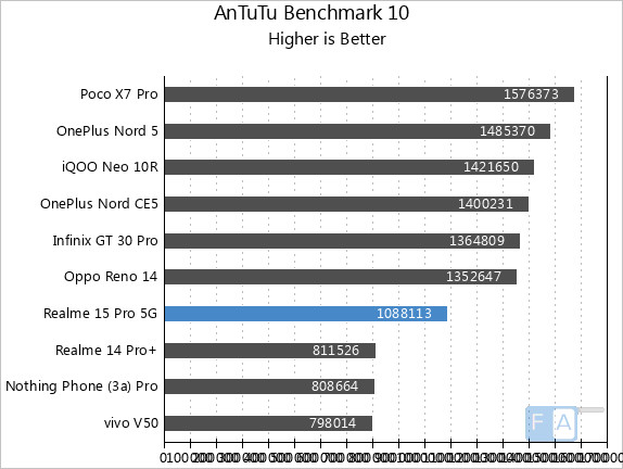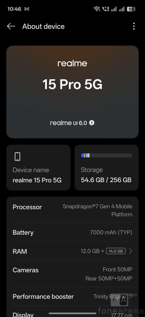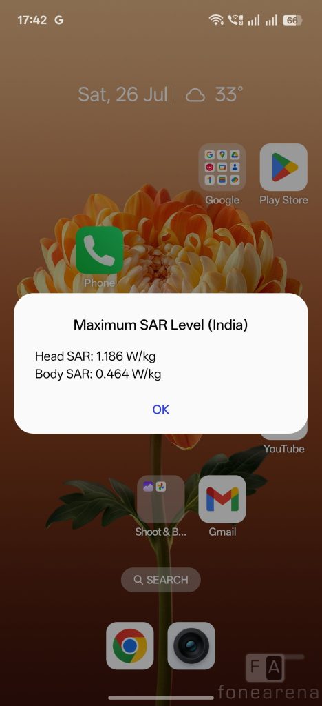 The realme 15 Pro’s body SAR is 0.464W/Kg and head SAR is at 1.186/Kg, which is similar to the 14 Pro+ which is comes to head SAR, and the body SAR is much less. This is well under the limit of 1.6 W/kg (over 1 g) in India.