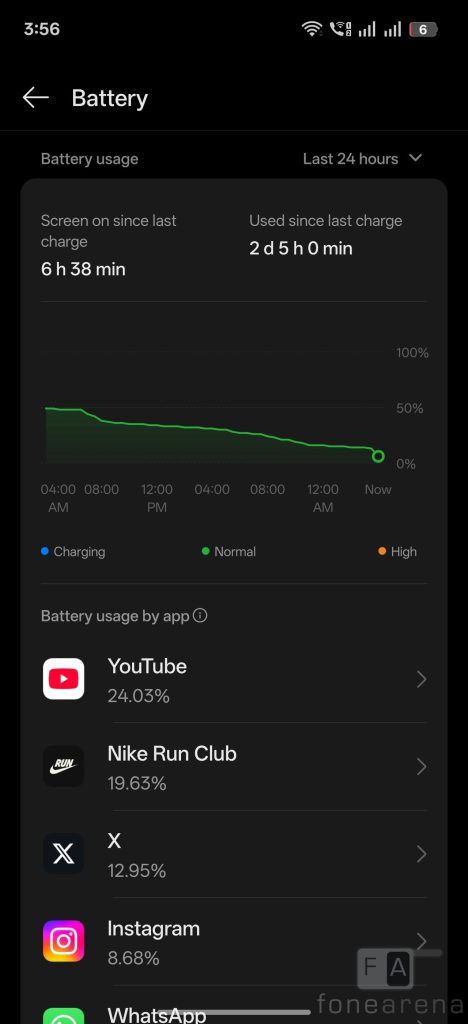 I got over 6 and half hours of screen on time with over 2 days of use, mostly on Wi-Fi, and occasional 5G use in 144Hz, which is impressive. This has 80W SuperVOOC Charge, same as the predecessor. It can charge up to 50% in less than half an hour and up to 100% in less than an hour with the bundled 80W charger, which is good.