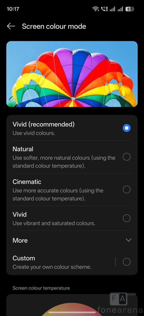 It offers good colour output since it has 100% DCI-P3 color gamut. You can select from vivid, Natural and Pro screen colour modes. There are additional Cinematic and Brilliant modes.