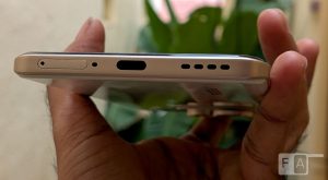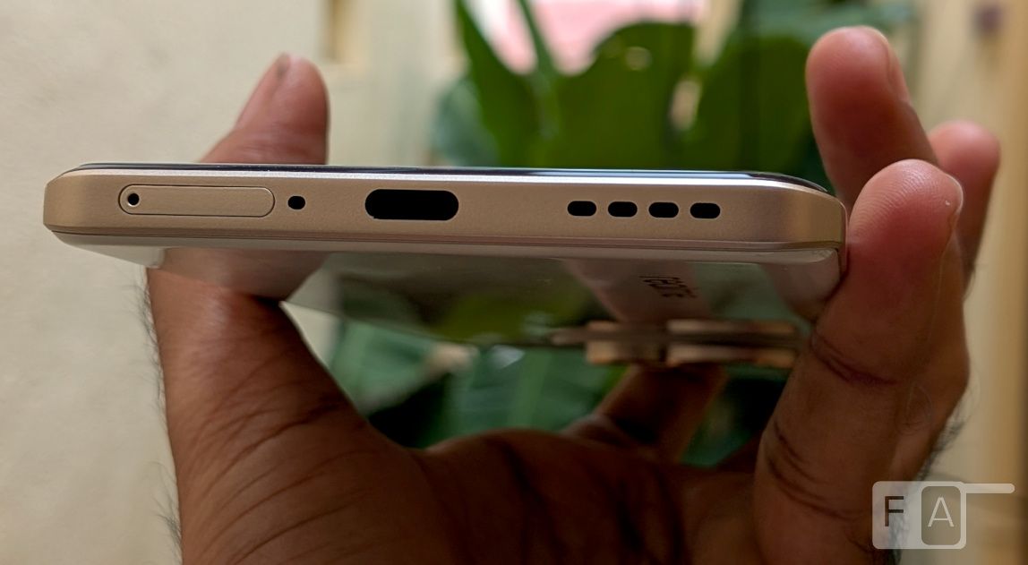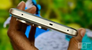Coming to the button placements and ports, the power button is present on the right side along with the volume rockers. There is nothing on the left. The Dual SIM slot, primary microphone, USB Type-C port and the loudspeaker grill are present on the bottom. The secondary microphone is on the top, along with a speaker vent and, there is also an IR blaster on the top.